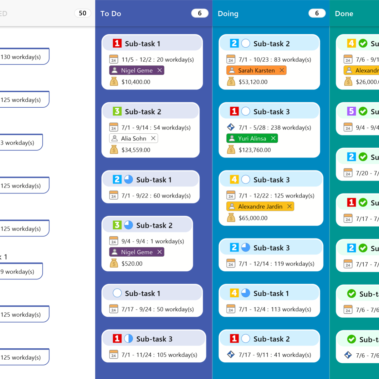 Les mode programmation est très similaire dans sa mise en page à celui du Kanban sauf que les colonnes sont définies par rapport aux dates (soit de début, soit de fin) de vos tâches.