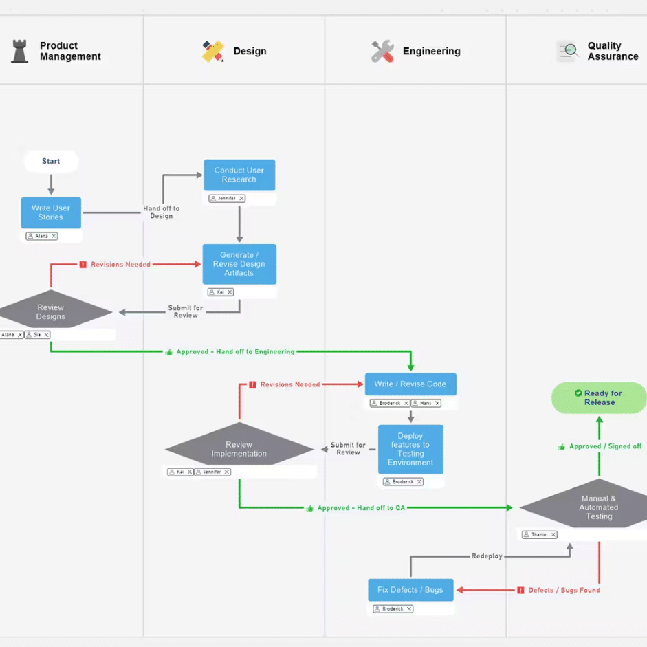 La particularité des diagrammes de flux est qu’ils sont très souvent combinés avec des méthodes pour optimiser leur fonctionnement : organigramme ANSI, diagramme d’activités UML, BPMN, diagramme à couloirs, SIPOC…