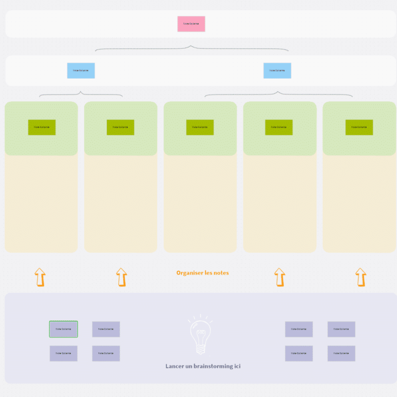 Les deux sont des espaces blancs vides dans lesquels vous pouvez disposer des sujets. La différence ? Dans le « Tableau blanc », les sujets auront la mise en forme d’un post-it, dans la « Map de formes libres » les sujets sont des sujets flottants.